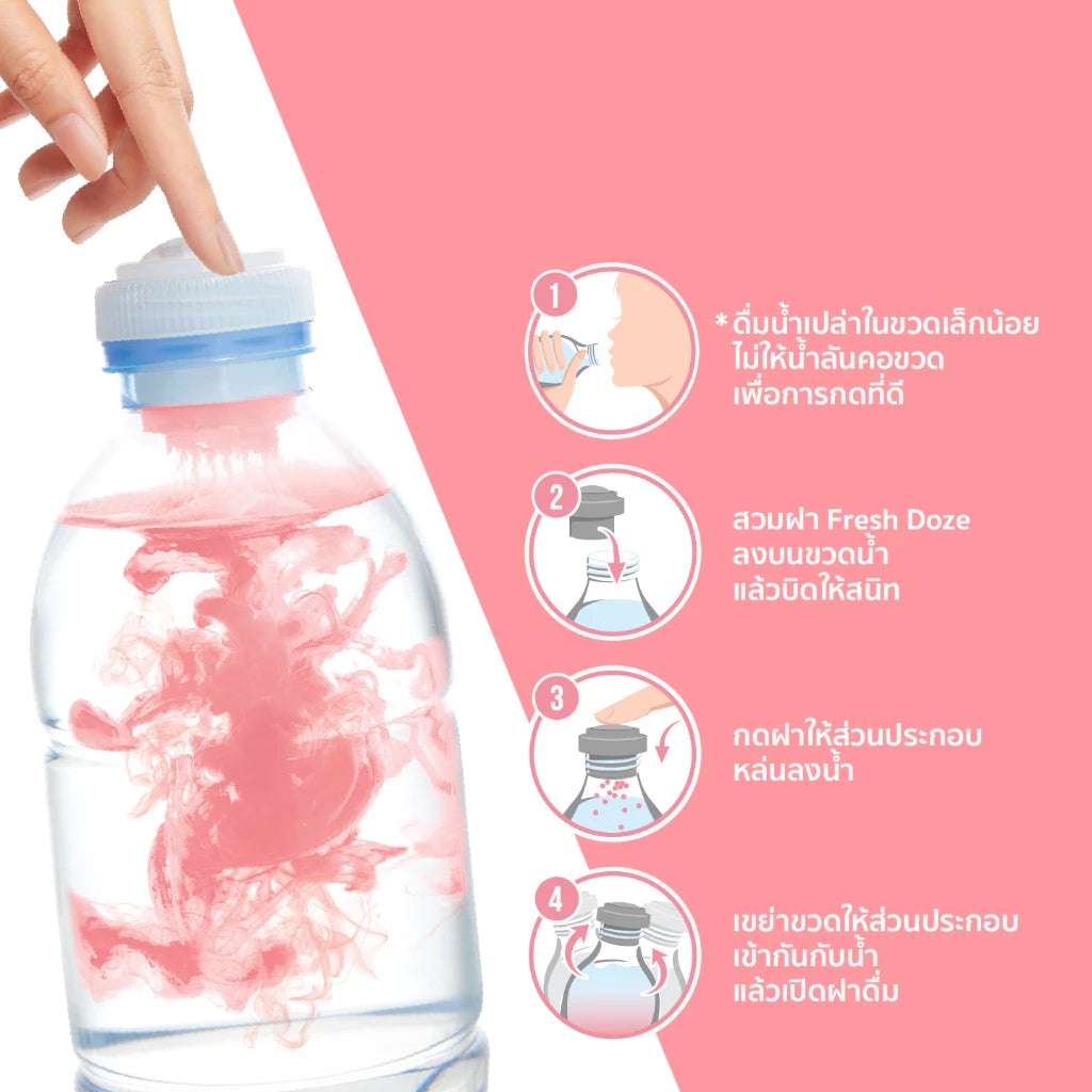 - Наденьте колпачок Fresh Doze на бутылку с водой и плотно закрутите.