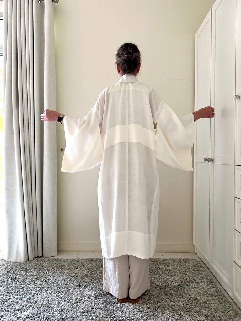 Витнажное кимоно средней длины тонкое без подкладки с хлопковым  воротником (нательное)