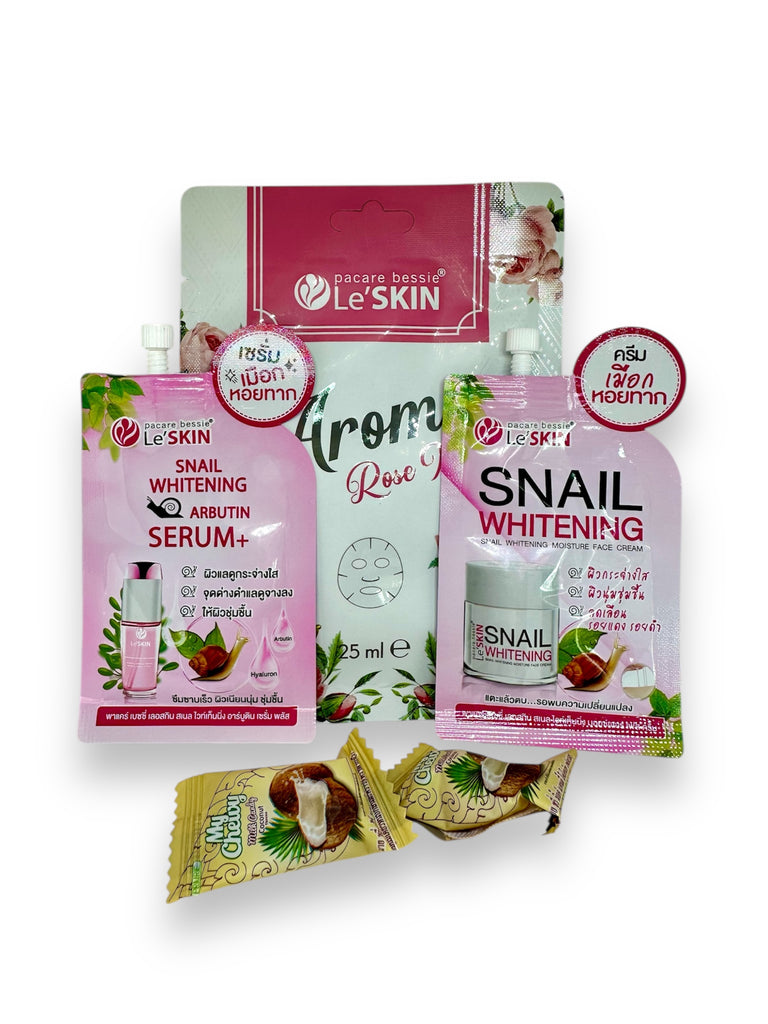 В наборе 2 крема (или сывортка) и тканевая маска для лица от бренда Le'Skin: