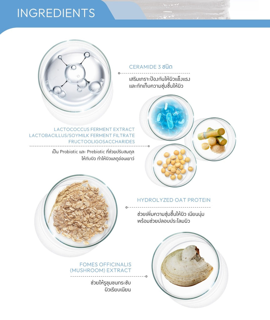 Экстракт лактобактерий ферментированный на соевом молоке и фруктоолигосахариды – это пробиотик и пребиотик, которые улучшают баланс в клетках кожи и делают ее моложе.