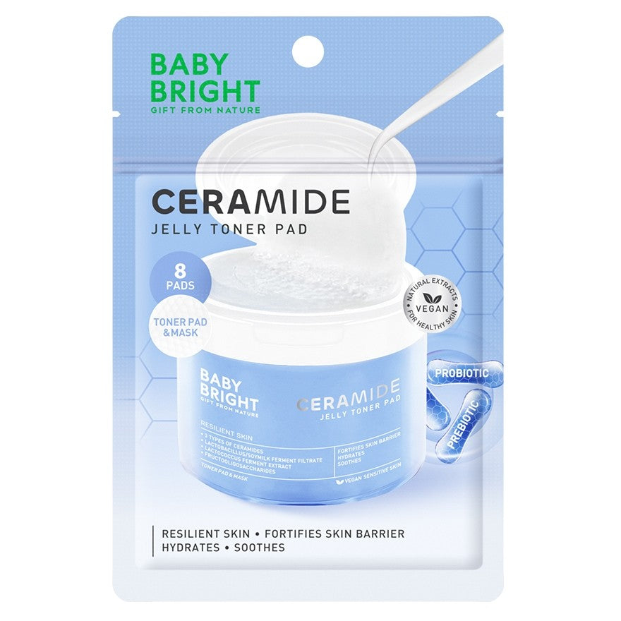 Тонер-пэды для лица Baby Bright Ceramide Jelly Toner Pad – это средство, сочетающее в себе мягкий ватный диск, пропитанный гелевой эссенцией с керамидами, и маску. Они помогают очистить остатки макияжа, глубоко увлажняют кожу с помощью водной эссенции, освежают, питают и поддерживают оптимальный уровень влаги в клетках, способствуют сохранению молодости кожи.