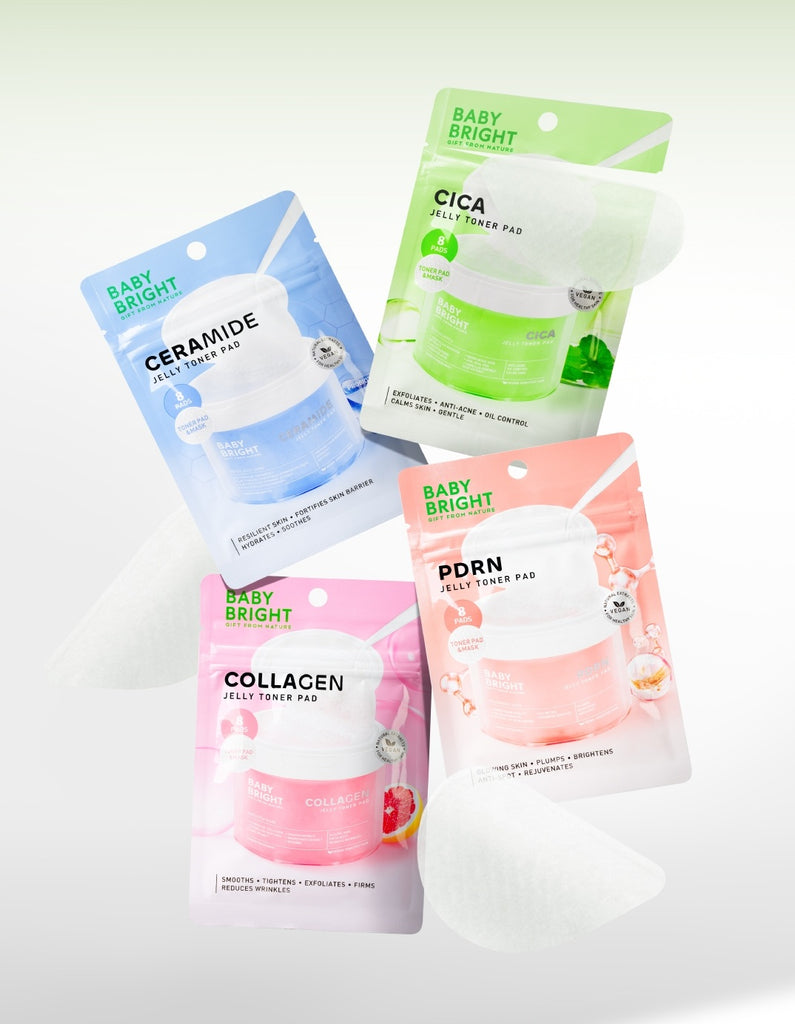 Тонер-пэды для лица Baby Bright Cica Jelly Toner Pad – это средство, сочетающее в себе мягкий ватный диск, пропитанный гелевой эссенцией с PDRN, протеином овса, экстрактом центеллы азиатской и гиалуроновой кислотой, а также маску для лица. Они помогают очистить остатки макияжа, глубоко увлажняют кожу с помощью водной эссенции, освежают, питают и поддерживают оптимальный уровень влаги в клетках.