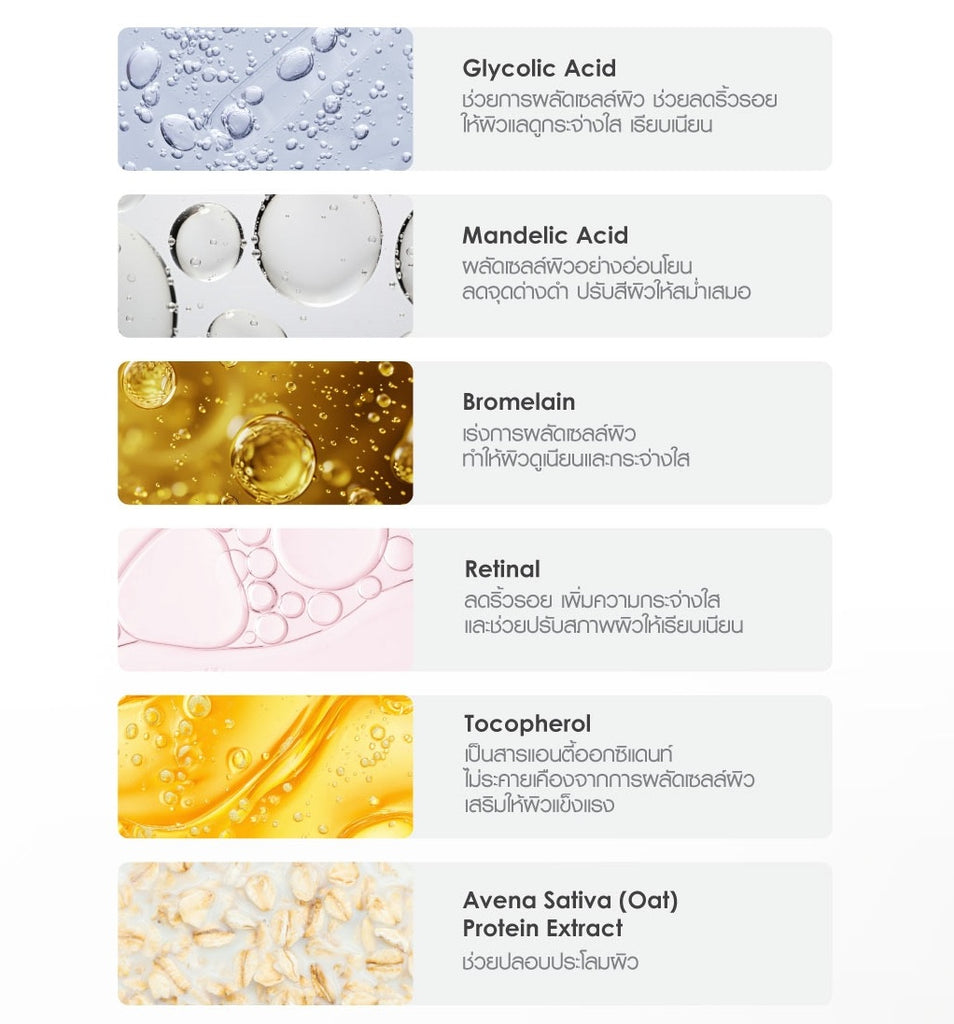 Бромелайн, природный фермент, расщепляющий омертвевшие клетки кожи, работает в синергии с АНА (миндальной и гликолевой кислотами), ускоряя мягкое отшелушивание, придавая коже гладкость, сияние и ровный оттенок.