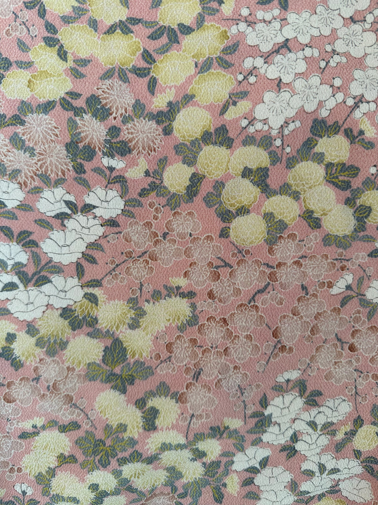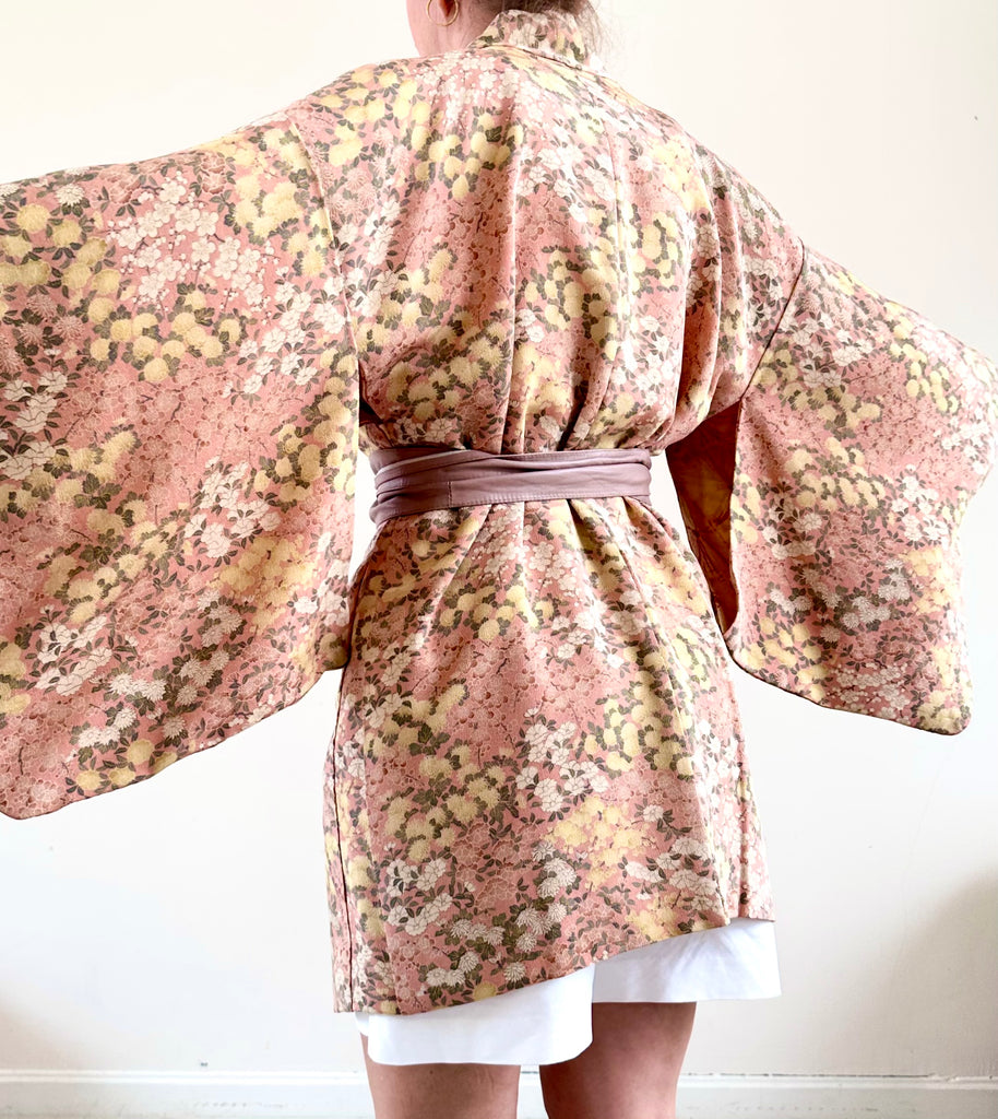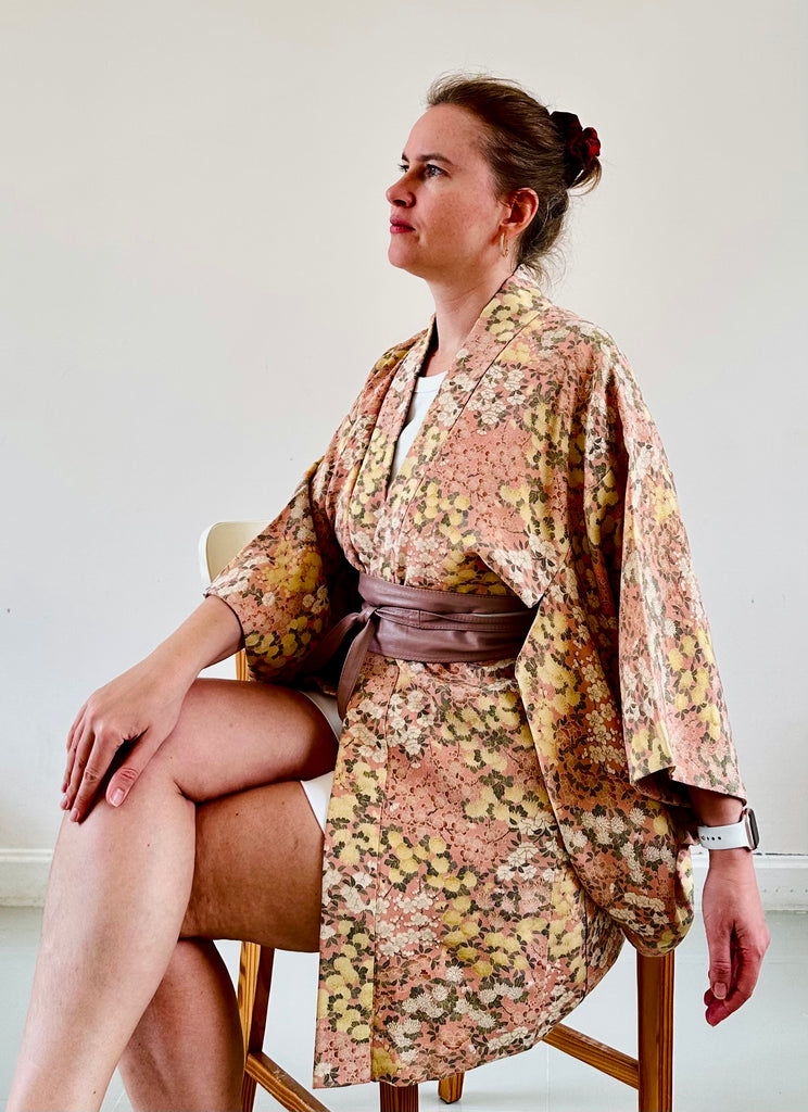 Silk Vintage Hahori Винтажное хаори из шелка в бежевом цвете с набивным цветочным рисунком