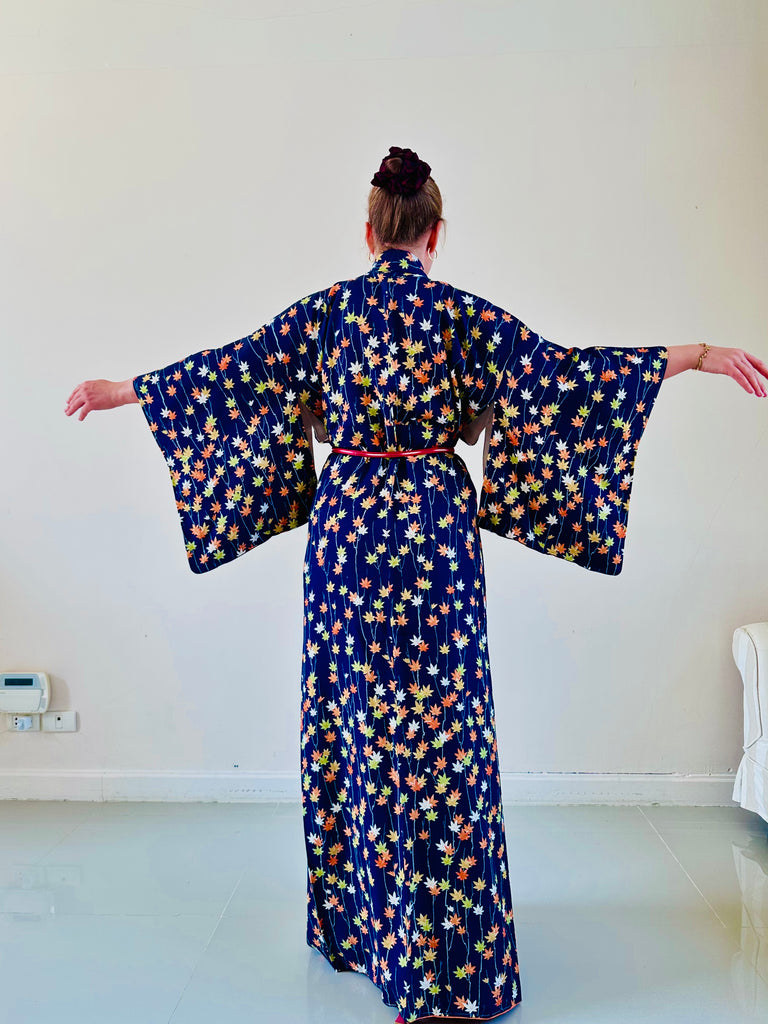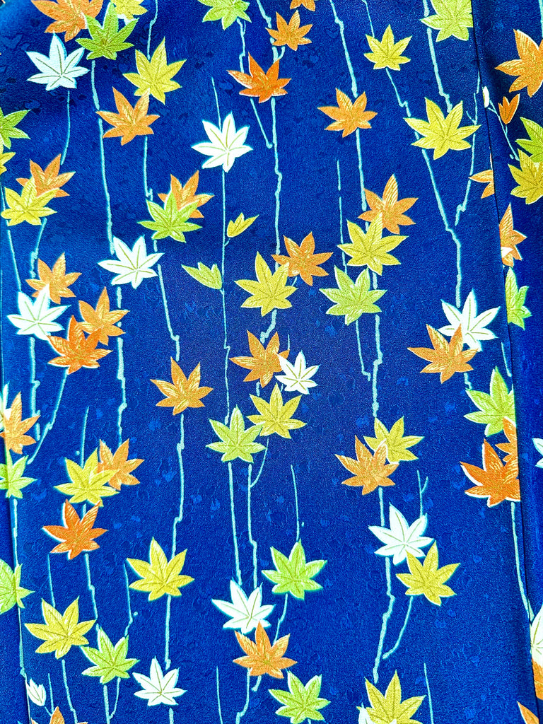 Silk Vintage Kimono (crepe de chine) in dark blue "scarlet maples", Винтажное кимоно из шелка (крепдешин) в темно-синем цвете "алые клены"